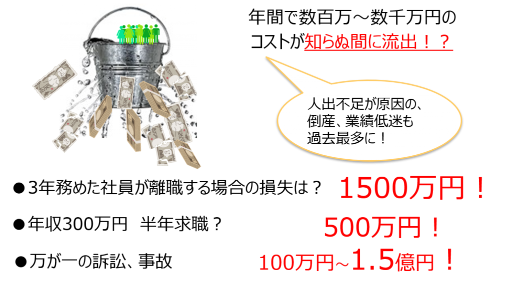 採用コストを考えることが多いですが、大きな問題である離職で失われる費用はPLやBSに記載されない大きなコスト。