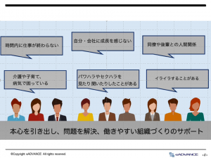 例:睡眠障害を放置すると「うつ病」の元になったり、大きな損失になる(会社には来ているがパフォーマンスが発揮できていないプレゼンティーイズムとなる)