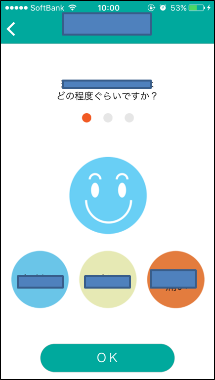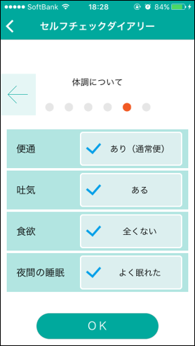患者さんの治療記録のアプリ開発例(イメージ)簡単にボタンで健康状態を選べるように開発